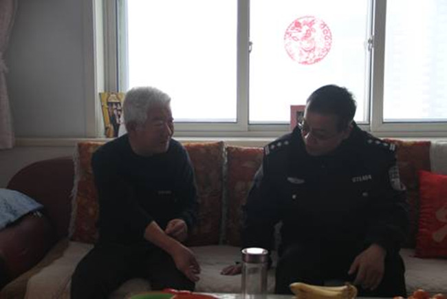 2018年1月9日上午,张家口市森林公安局宣化分局程永成局长率政治处工作人员,代表分局到该局已退休老民警武佩有家中进行看望并慰问,同时为其带去了米、面、油等慰问品。